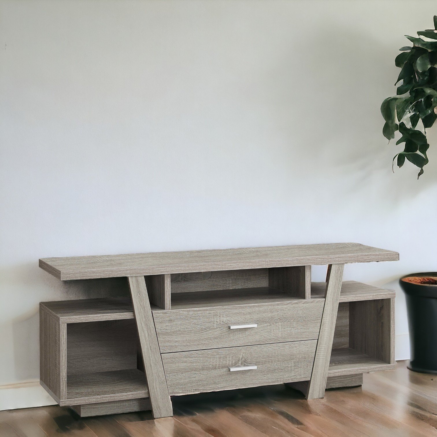 15.5" X 60" X 23.75" Dark Taupe Particle Board Hollow Core TV Stand With 2 Drawers