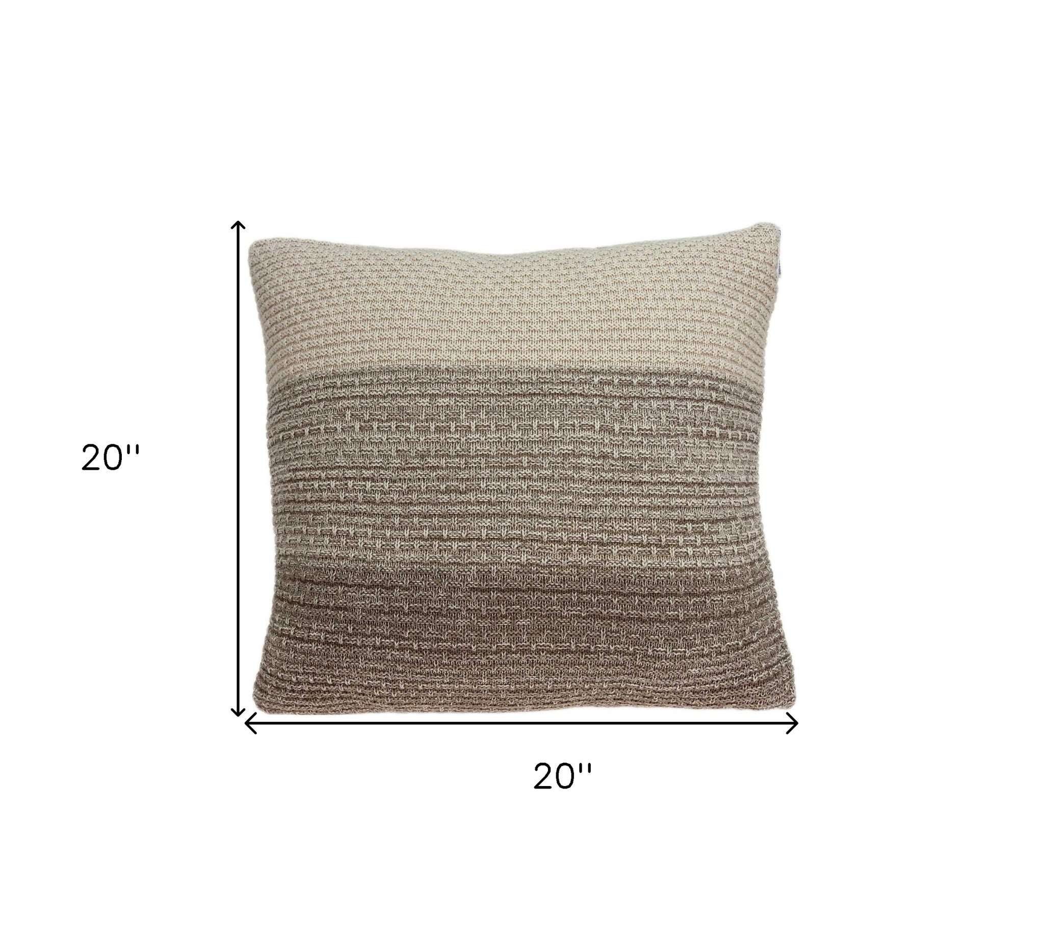 20" X 20" Beige and Brown Cotton Pillow
