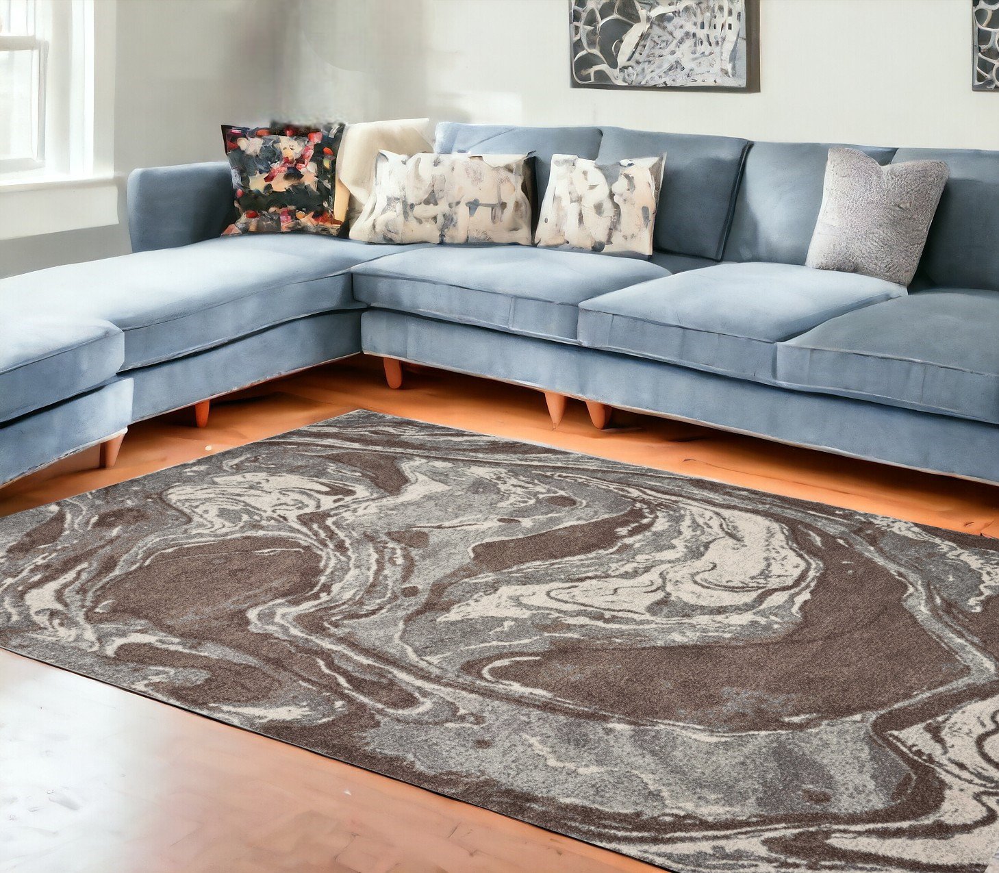 Embellish your home and convert your flo or s into pieces of art with this captivating mocha flow rug. Its a lovely piece, which will definitely breathe a bit of fresh air into your space and introduce some variety into your rooms. This rug is a hard wearing piece made in Turkey, which is machine woven from high grade heat-set polypropylene and has no backing. Its part of the Mirage collection, and its show-stopping watercol or designs will give a charming modern feel to the atmosphere of your home. As f or measurements, they are 1/2 f or height, 94 f or width, and 130 f or depth. To care f or it, vaccum it regularly and spot clean any stains. Its also recommended that you have it professionally cleaned ocassionally. If you want a good looking and practical rug that can fit in well with any interi or , this is the one f or you.